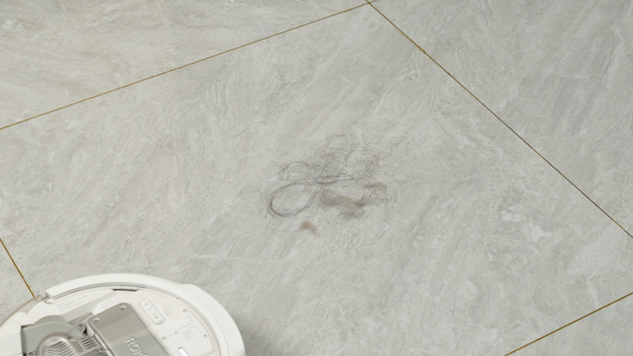 针对掉发星人和养宠家庭的洁净问题,我们还模仿了用户日常梳头零落的头发以及宠物掉落的毛发进行测试,通过双悬臂0缠中刷和防环绕纠缠边刷彼此共同,大疆ROMO P很轻松就将大团毛发吸入尘盒。