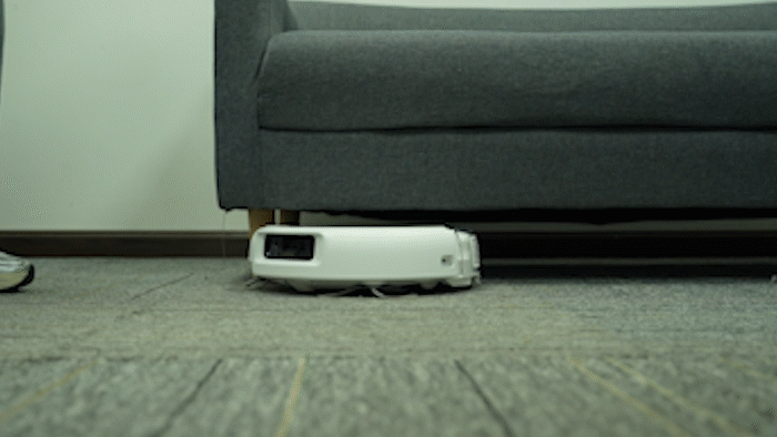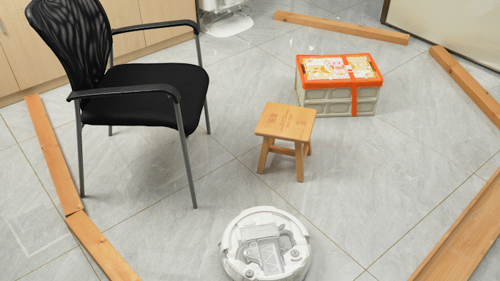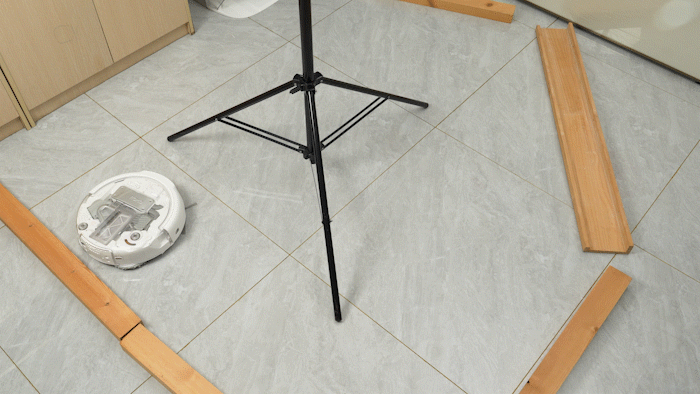 保守扫地机械人正在面临非曲立的桌椅腿往往会攀爬而导致悬空卡住,洁净结果并不抱负,接下来我们将用支架模仿非曲立桌椅腿的家具,从动图能够看到大疆ROMO P不只不触碰攀爬椅子腿,还能切近裂缝洁净,减罕用户介入率。