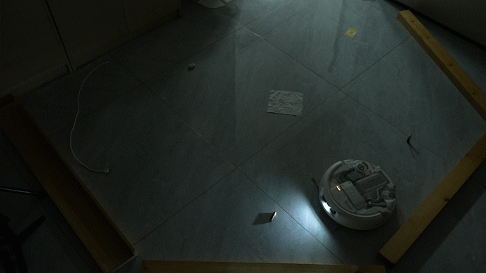 同样的妨碍物我们再次将灯光封闭,测试其暗光避障能力,避障结果也是同样精准丝滑,实正实现全天候的智能洁净。