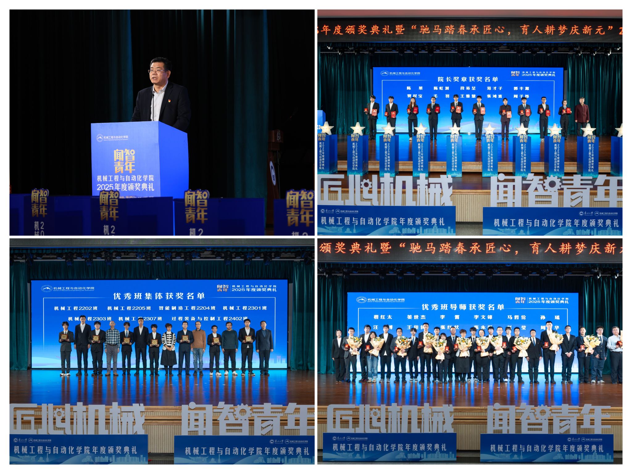 学院党委郝建山正在致辞中系统回首了一年来学院取得的主要成绩。学院积极办事国度计谋,并正在环节科研范畴实现标记性冲破,获得国度严沉专项支撑。同时,学院成功引进增材取激光制制范畴领军团队,为久远成长奠基根本。正在人才培育方面,学院学子表示凸起,研究生学术丰盛,正在“挑和杯”“中国国际大学生立异大赛”等多项赛事中斩获国度级项,结业生就业率持续连结高位,展示了全面成长的优良素养。郝建山阐释了“闻智青年”品牌的育人内涵,勉励全体师生胸怀“国之大者”,将小我成长融入“制制强国”计谋,过硬本事,怯于立异创制,勤奋成为担任平易近族回复大任的时代新人。副院长罗忠表扬决定。颁环节分三轮顺次进行。起首颁布的是“院长章”,刘云飞为毛羽等10名正在专业进修、科技立异、社会实践等方面表示杰出的学生颁布章。班导师代表为7个正在班风、学风及凝结力扶植中成效显著的班级颁。最初,仪式聚焦育人一线论理学生代表向获评“优良班导师”的教员们献上鲜花取荣誉证书,表达诚挚感谢感动。“院长章”获得者代表毛羽连系科研竞赛取意愿办事履历,讲述了“道阻且长,行则将至”的成长;“优良班集体”获代表豆煜轩分享了班级凝心聚力、共建优秀学风的活泼经验。正在“闻智匠心 共话青蓝”出格环节,优良班导师马哲伦取所带班级学生代表刘定佳同台交换,从分歧视角展示了师生间思惟引领、学业互帮、讲授相长的温情互动,彰显了育人一线的深挚交谊取结实成效。据悉,“闻智青年”是机械工程取从动化学院出力打制的文化育人品牌。本次颁仪式既是年度的集中展现,也是典型树立、旨正在指导全体学生以先辈为楷模,坚想、夯实专业根本、锻制立异能力,勤奋成长为具有家国情怀、全球视野取创制活力的杰出工程人才,为学校“双一流”扶植和高质量成长注入芳华力量。